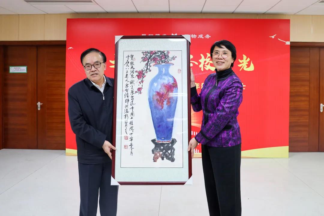學(xué)校90多歲高齡的華澤澎教授得悉四位校友當(dāng)選院士的喜訊后也非常高興,并和余世誠(chéng)教授分別提筆潑墨,為四位院士題字作畫(huà)。陳峰、吳小林向新晉院士們贈(zèng)送了書(shū)畫(huà)作品。