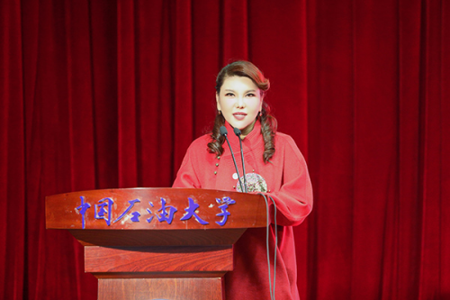烏蘭圖雅生動(dòng)講述了烏蘭牧騎的發(fā)展歷史、優(yōu)良傳統(tǒng),烏蘭牧騎精神的內(nèi)涵及時(shí)代價(jià)值?!巴咚{(lán)藍(lán)的天上飛雄鷹,我在高崗眺望北京……”,活動(dòng)中,烏蘭圖雅深情演唱《站在草原望北京》《草原上升起不落的太陽(yáng)》等歌曲,表達(dá)了少數(shù)民族熱愛(ài)祖國(guó)、積極投身中國(guó)夢(mèng)偉大事業(yè)的真摯情懷。中國(guó)音樂(lè)學(xué)院博士研究生、蒙古族馬頭琴演奏者諾敏的現(xiàn)場(chǎng)伴奏,讓現(xiàn)場(chǎng)師生近距離感受了蒙古族民族音樂(lè)的魅力。活動(dòng)后,現(xiàn)場(chǎng)同學(xué)與烏蘭圖雅進(jìn)行熱情互動(dòng)。活動(dòng)在烏蘭圖雅與現(xiàn)場(chǎng)師生合唱校歌《我為祖國(guó)獻(xiàn)石油》中落下帷幕。